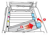 Magenta (M) and lastly Cyan (C) ensure they are replaced in